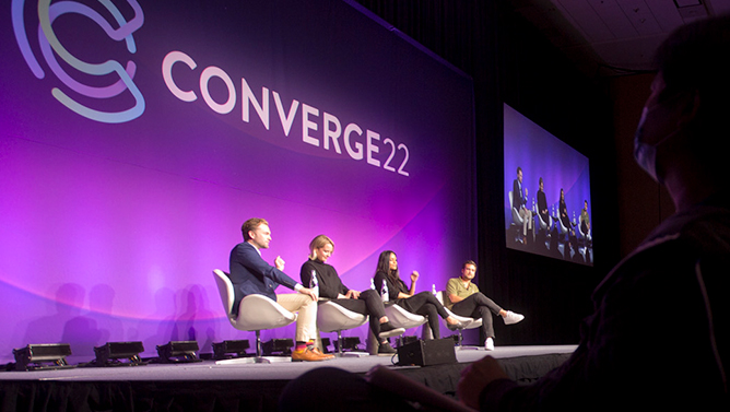 Circle’s mission is to make global finance frictionless and more equitable. Their annual FinTech conference attracts a broad, global ecosystem of corporate fanciers, crypto users, systems engineers and developers. So, we gave them a brand experience focused on convergence— merging multi-industry audiences with purposely agile content and environmental design, all while creating a sense of stability and belonging akin to being connected to a global community.